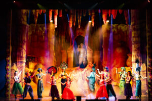 This is our largest Aladdin set.  It is arabian in style with a traditional finale cave end Act 1 or Egyptian Tomb.  It was orginally built for the Lowry Salford but has been adapted for venues such as Theatre Royal Norwich.